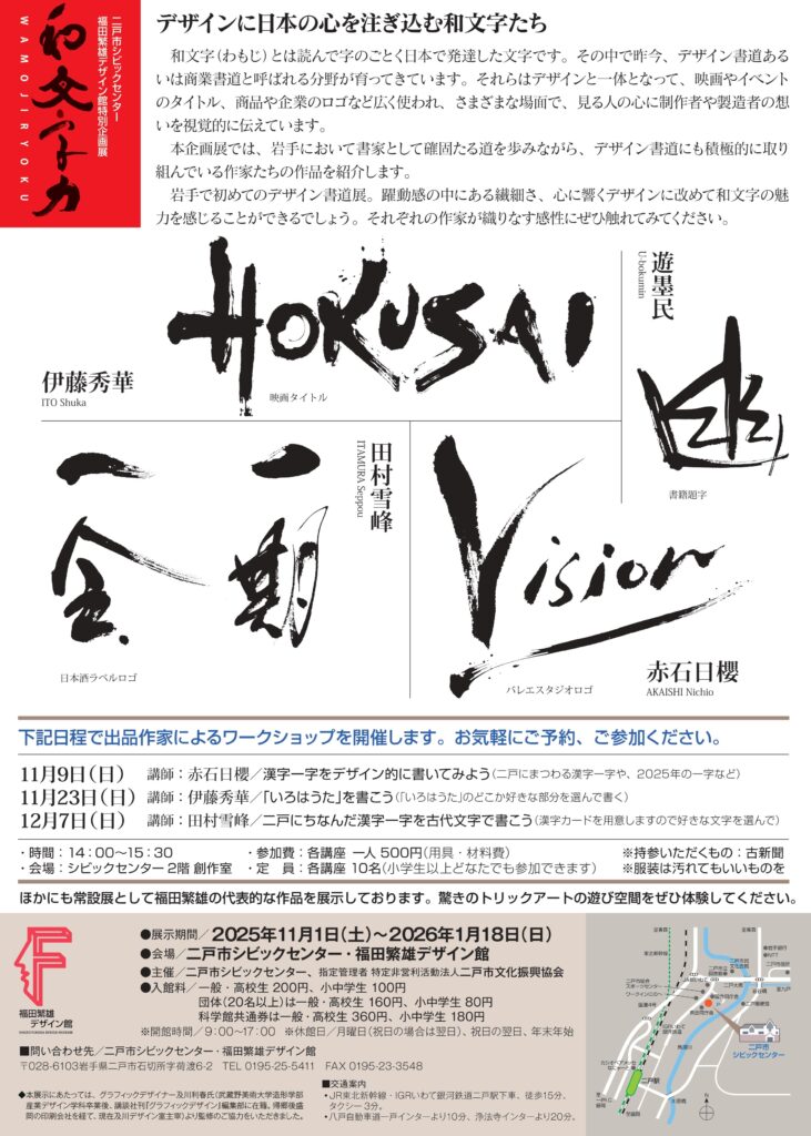 問い合わせ先:二戸市シビックセンター・福田繁雄デザイン館 (℡0195-25-5411)