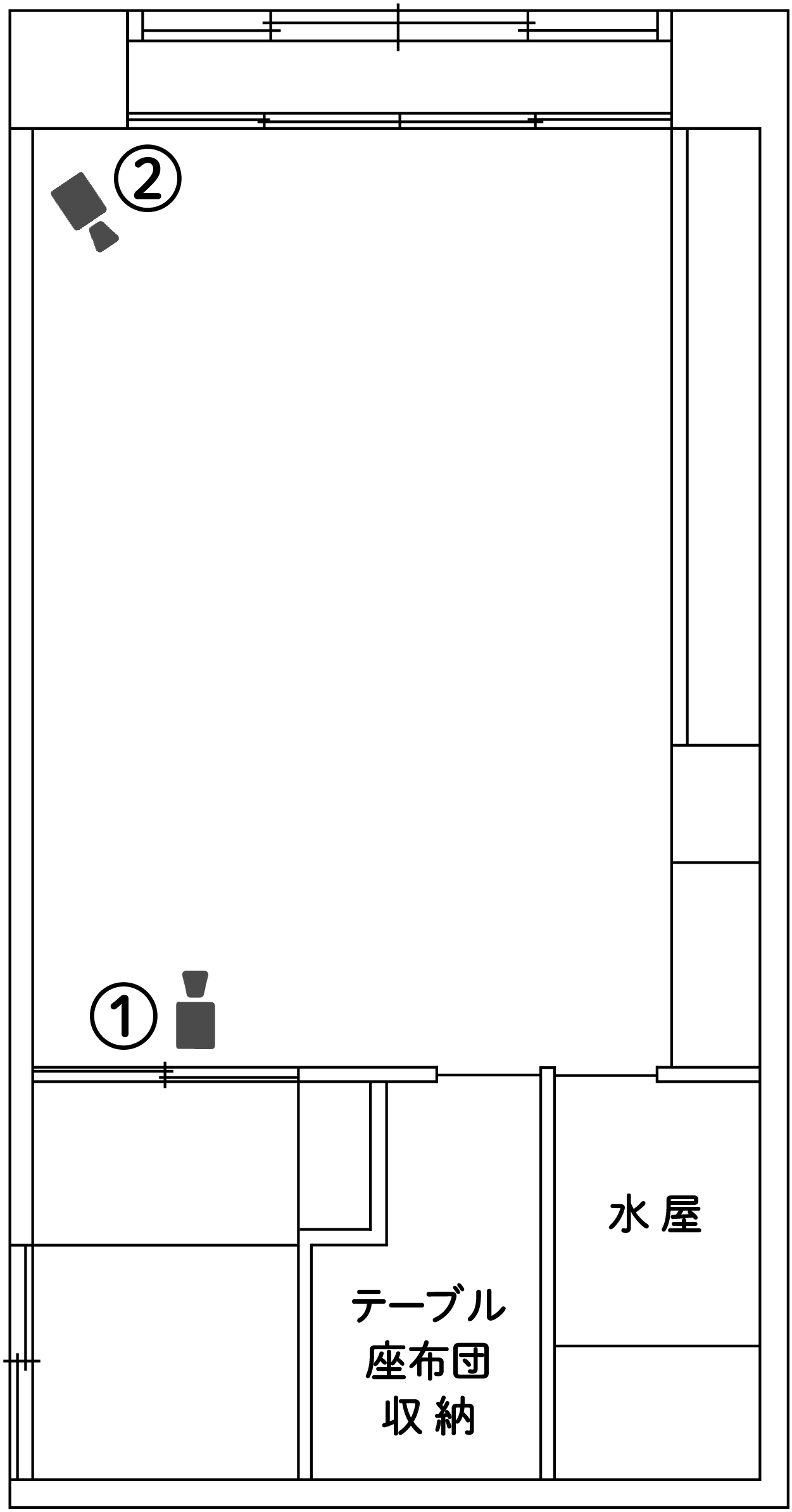 長い机(180cm)4台、短い机(140cm)4台、座布団25枚があります。