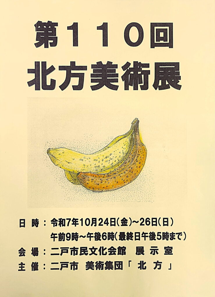 イベント 【10/24(金)~26日(日)】第110回 北方美術展 2025年9月26日 2nohekaikan@195 開催日時2025年10月24日(金)~26日(日) 9時~18時まで(最終日のみ17時まで)場所二戸市民文化会館 展示室入場料金無料主催主催:二戸市美術集団「北方」
