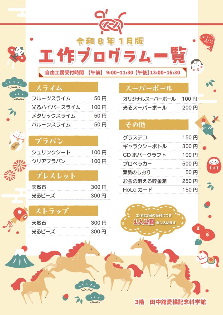 ※上記のプログラム一覧は団体利用での工作プログラム一覧ではございません。