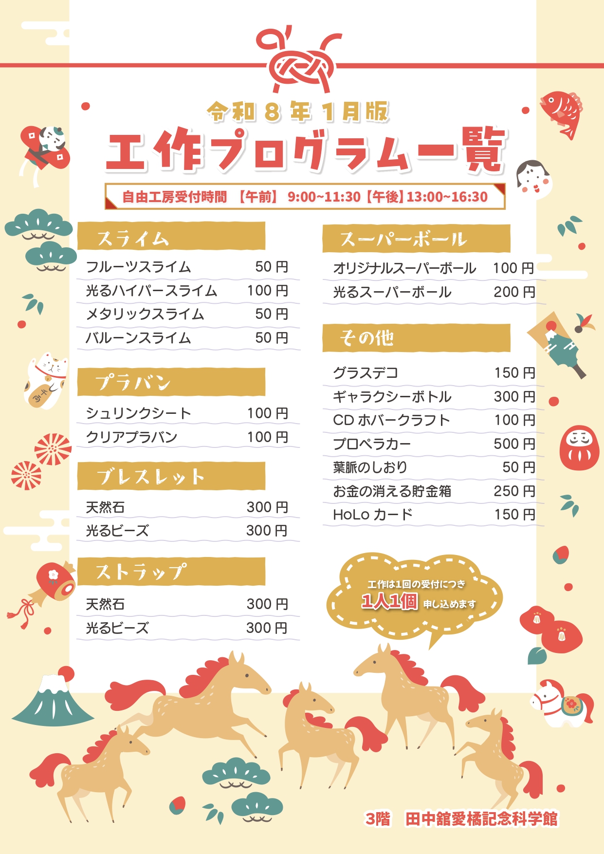 ※上記のプログラム一覧は団体利用での工作プログラム一覧ではございません。